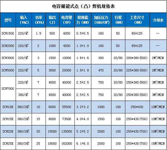 首選DTR系列之電容儲能式點凸焊機,PLC控制核心,有效控制沖放電過程,可分別調節預壓、放電、鍛壓、維持、休止的時間及充電電壓值,規范調整十分方便,逐次逼近型12位ADC(模擬/數字轉換)采樣速率最大100KSPS以保證充電電壓的精度保持在±0.5V,特別設計的專用控制電路具備了移相觸發充電、放電電流檢測和換向放電等功能,使電容儲能點焊機避免了限流電阻發熱引起的能消耗,同時也避免阻焊變壓器的磁化。